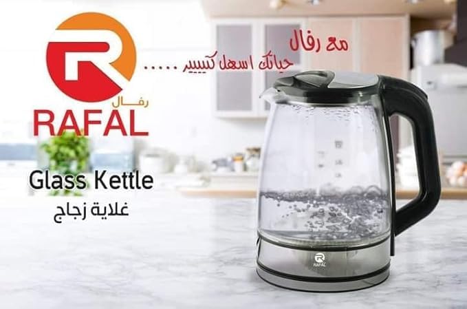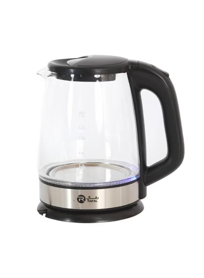 Generic - Rival Glass Electric Water Kettle 2.2 Liter, 1500 Watts, Stainless Base, LED Light, Auto Shut-Off - Clear/Black