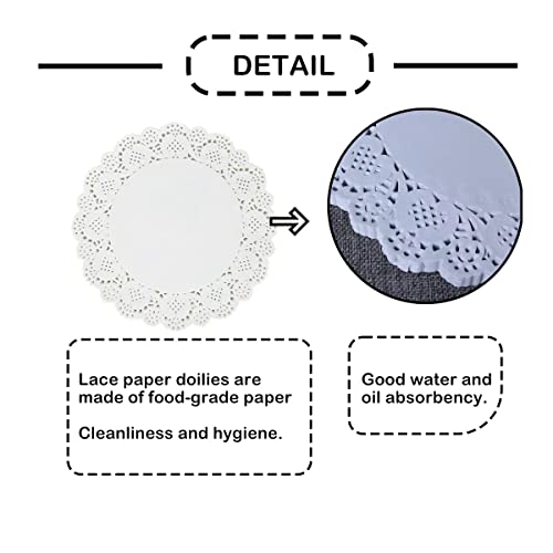 - المزايا: المفارش الورقية المصنوعة من الدانتيل مصنوعة من ورق آمن غذائيًا، وهي نظيفة وصحية ولها تأثير ماص للزيت.