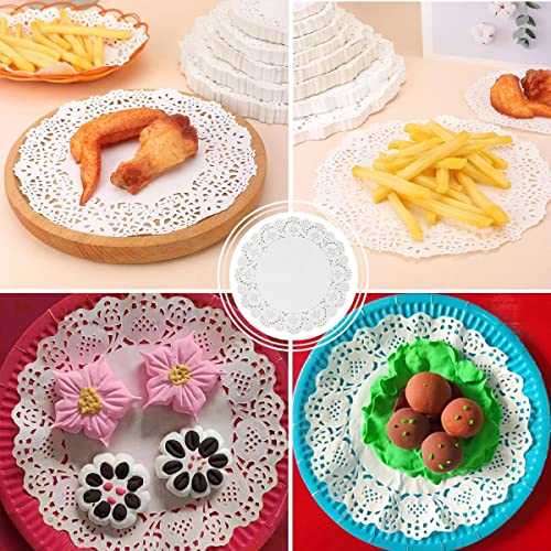 Rixoxo - مفارش طاولة من الدانتيل الورقي، 150 قطعة، مفارش ورقية مستديرة بيضاء من الدانتيل، مفارش للاستعمال مرة واحدة، مفارش مقاومة للدهون لتغليف الكيك وادوات المائدة في حفلات الزفاف (150، 12 انش) 381، 30.48سم