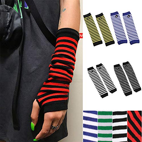 RK-HYTQWR - Women Winter Cable Knitted Long Fingerless Gloves Striped Thumbhole Arm Warmers,Black And White Stripes Sleeve,Black And White Stripes