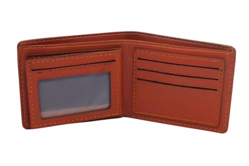 MALTA - محفظة جلد ثنائية الطي مع نافذة لبطاقة الهوية للرجال من ار كيه - بني