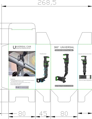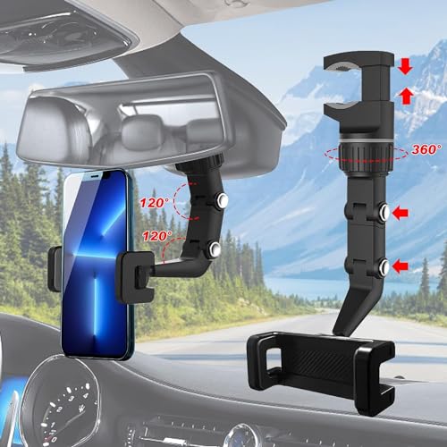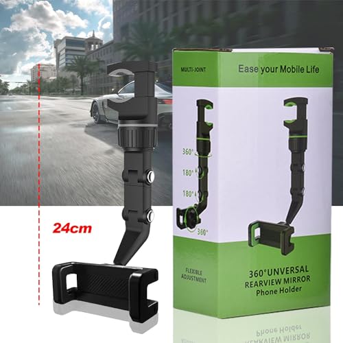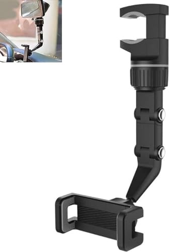 Generic - حامل موبايل للمراة الخلفية قابل للدوران 360 درجة للسيارة، حامل موبايل حامل بتصميم عالمي (اسود) من رنا ستور