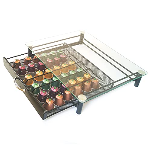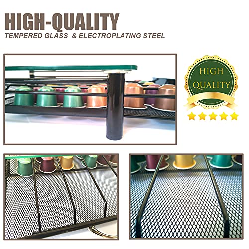 - ☕HIGH-QUALITY PRODUCT☕ Tempered glass of the coffee holder can support the weight of a coffee machine, which never will break or bend. The Rness coffee capsule storage holder will solve your kitchen dilemma’s with high-quality and practical products.