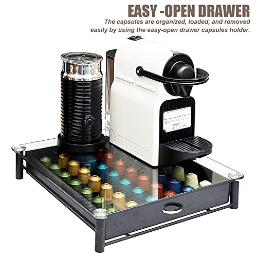 - ☕EASY-OPEN DRAWER☕ The capsules are organized, loaded, and removed easily by using the easy-open drawer capsules holder. Keep the capsules neatly hidden away then slide the drawer open when you’re ready to take your collections.
