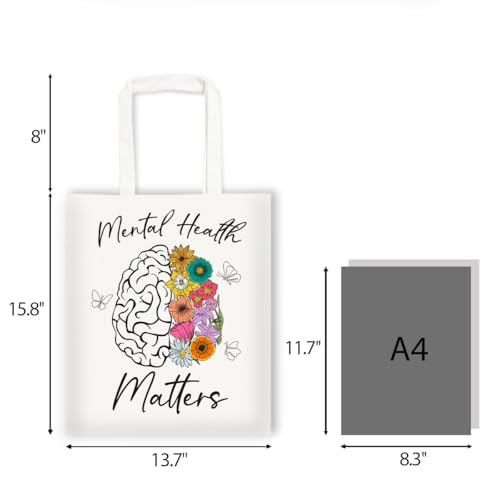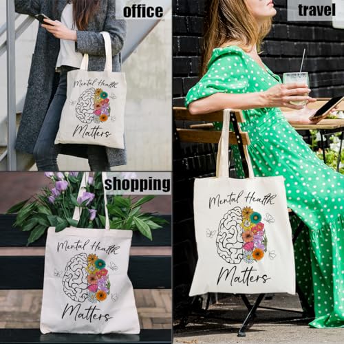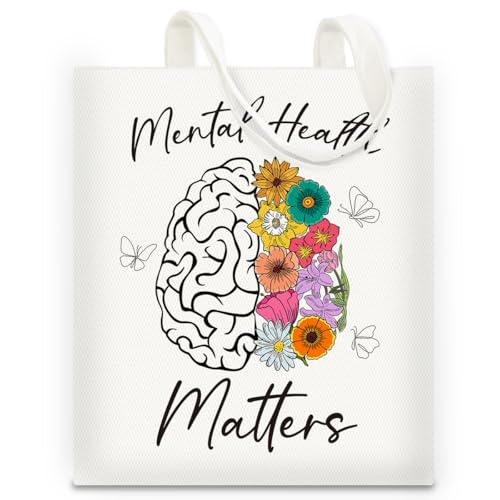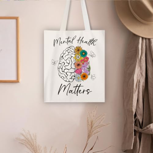 RNYJJ - Mental Health Tote Bag for Women, Psychology Gifts for Women Therapist Canvas Tote Bag for Work Travel Shopping Daily Use, Mental Health Matters Reusable Grocery Bag Gift