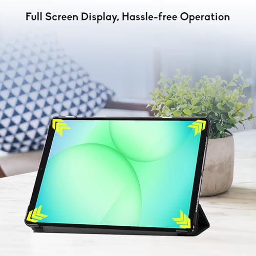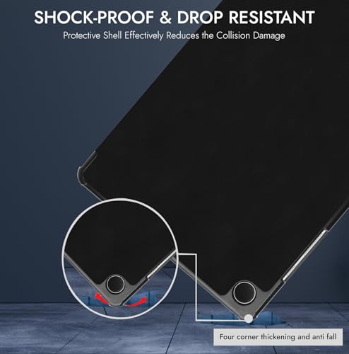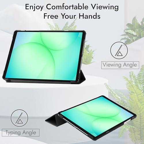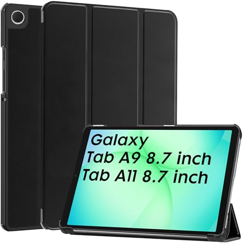 Robustrion - روبيستريون غطاء حماية لجهاز سامسونج جالاكسي تاب A9 مقاس 8.7 بوصة جراب بمسند قلاب لتابلت [SM X110 X115 X117] اسود جلد صناعي