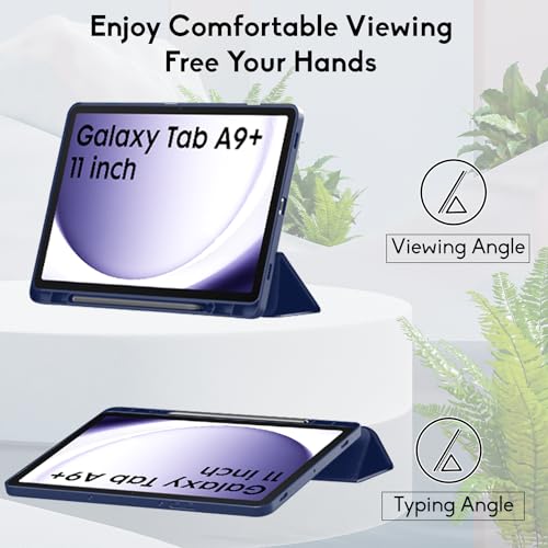 - Trifold Design and Pen Holder: Enjoy the convenience of the trifold design, providing viewing and typing angles, making it great for work, browsing, and multimedia on your Samsung Tab A9+ 11 inch. Build in Pen Holder to securely keep your Stylus Pen.