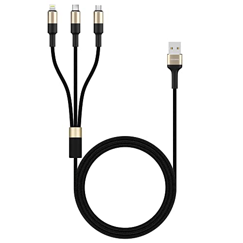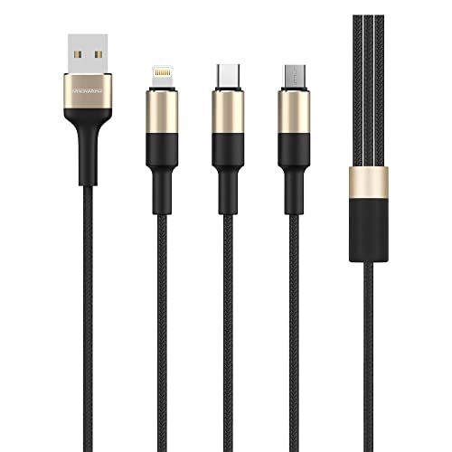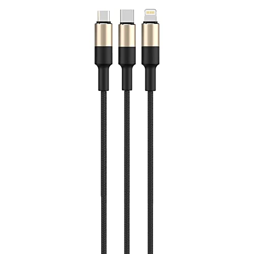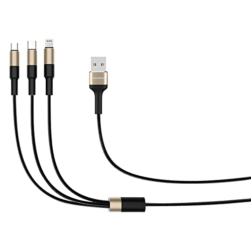 - كابل 3 في 1 للشحن السريع بحد أقصى لشدة التيار 3 امبير بطول 100 سم، المادة: بلاستيك بي في سي ونايلون ومعدن، 30 كجم، مقاومة الشد 30000 مرة، اختبار الانحناء 10000+، يتضمن مدخل ومخرج وهيكل وغلاف معدني ممتاز