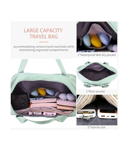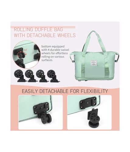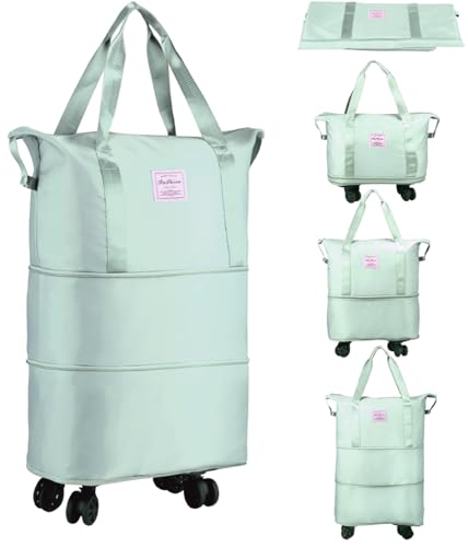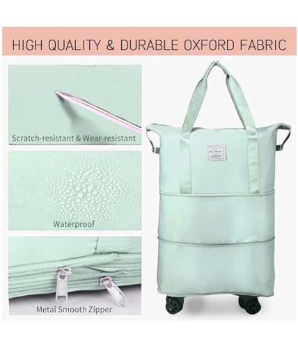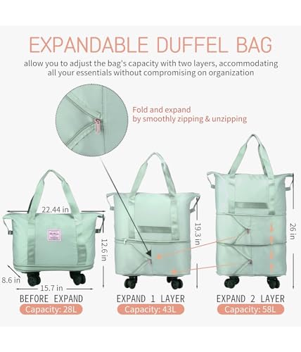 SIYONAA - Rolling Duffle Bag With Wheels, Expandable Foldable Luggage With Handle for Travel, Large Weekend Bag, Green, L