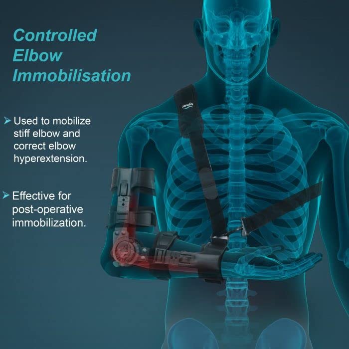 - ROM Elbow Brace controls and restricts the degree of flexion and extension of the elbow joint, allowing either a range of motion or immobilization of the elbow joint based on one’s preference. With its universal design, the device can be used on virtually all patients and can treat a multitude of orthopedic problems at the same time.