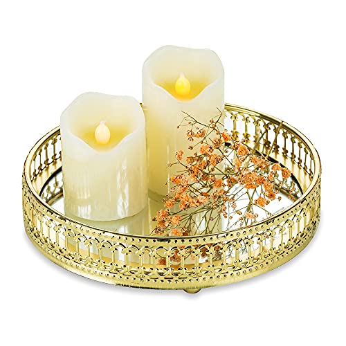 - 【تصميم أنيق بمرآة】صينية شموع معدنية ذهبية مع قاعدة بمرآة مصقولة وإطار معدني متين. فقط ضعي الشموع المفضلة لديك على هذه الصينية الأنيقة والعصرية لتعكس الإضاءة الجميل!