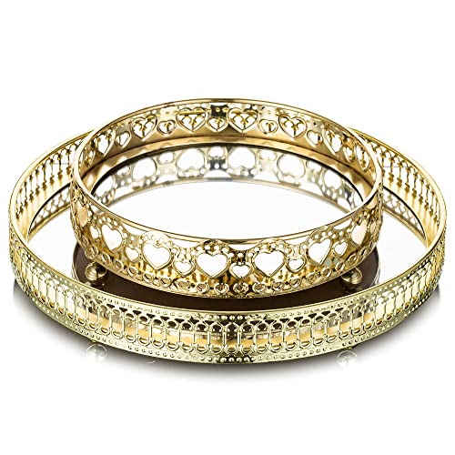 Romadedi - صينية حامل شموع للزينة مع قاعدة بمرآة من روماديدي - صينية عرض معدنية ذهبية مستديرة، يمكن استخدامها كمنظم اثري زينة او اكسسوارات للمنزل، كقطعة زينة وسطية لطاولة الطعام وطاولة القهوة، 17 سم، قلب