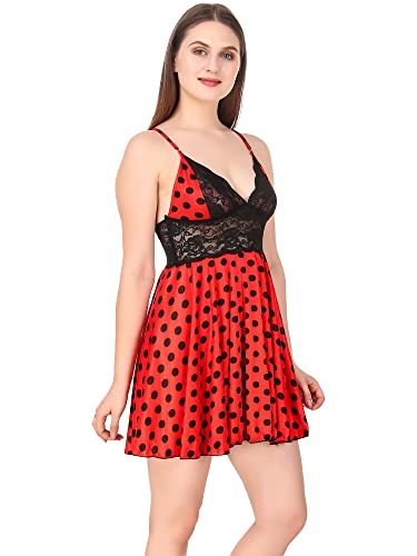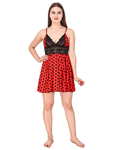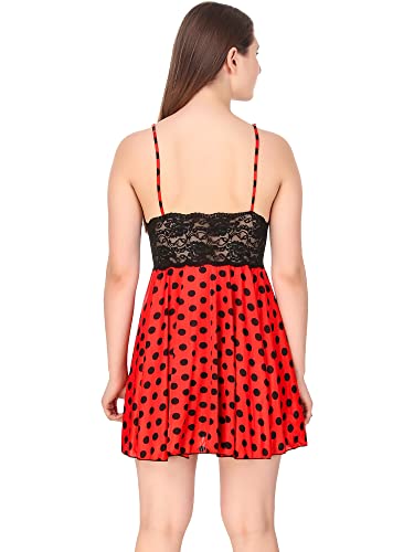 Romaisa - Romaisa Women's Satin Polka Dots Above Knee Length Babydoll (Free Size), Red, One Size