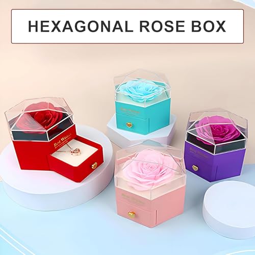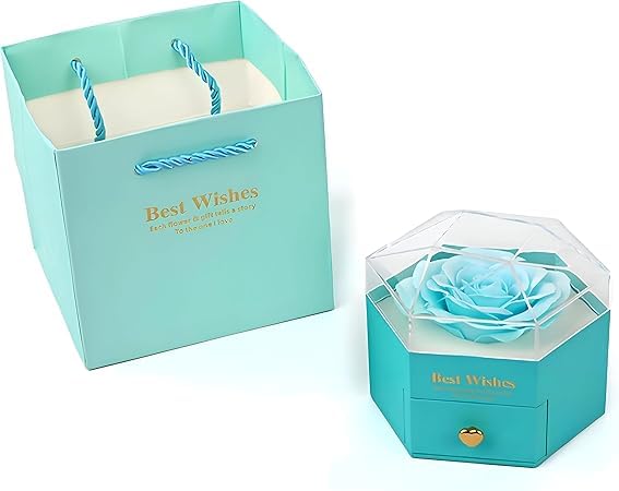 - يتميز صندوق المجوهرات السداسي هذا بالزهور الأبدية المحفوظة وزهور الصابون، مما يخلق هدية رومانسية ورمزية تجسد الحب والجمال الدائم، مثالي للتعبير عن المودة في المناسبات الخاصة.