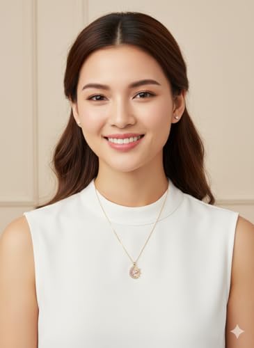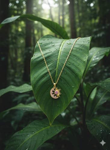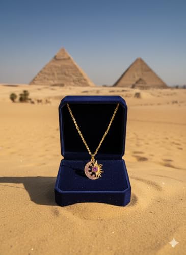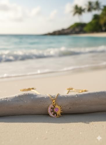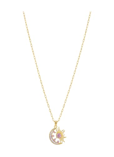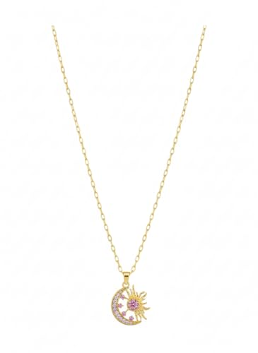 Generic - Romantic Sun and Moon Necklace for Women 18K Gold Plated | Sparkling Rose Crystal | Enchanted Celestial Design | Anniversary and Occasion Gift | Stainless Steel | Rust and Fade Resistant