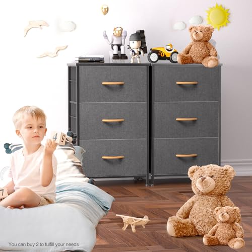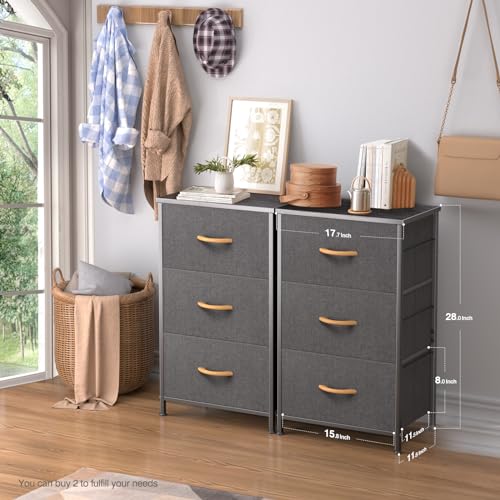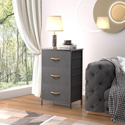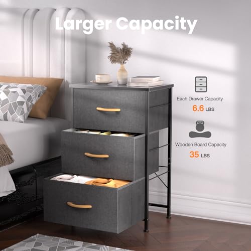 ROMOON - ROMOON Nightstand Chest with 3 Fabric Drawers, Bedside Furniture,Lightweight Accent Table, Storage Drawer Unit with Wood Top Fabric Bins for Bedroom, College Dorm, Closets,Nursery - Dark Gray
