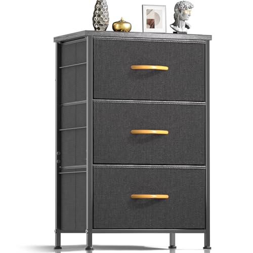 - Multifunction Fabric Cabinet: This fabric dresser designed lightweight to easily fit for smaller spaces while still providing plenty of storage space with 3 Collapsible drawers, shelving things as you wish on top board. This closet drawer dresser not only a nightstand but also a great closet organizer for bedroom, nurseries, playrooms, entryways and more; Ideal for small spaces such as apartments, condos and dorm rooms, can withstand up to 50lb.