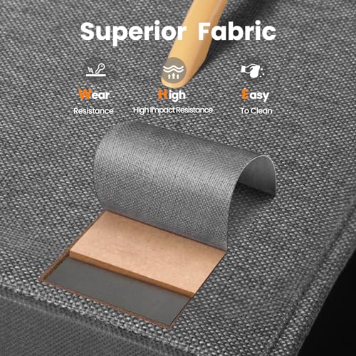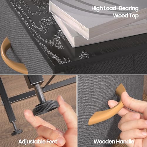 - Eco-Friendly Material & Sturdy Structure: Frame--use strong steel, cross support bar and drawer support shelf were added, will not shake under full load; Fabric Bins---Combine MDF board with breathable fabric. Top board---0.55" thickness wood boards; Wooden handle for each drawer bin for smooth opening and closing. Adjustable feet for protecting floor while stand steadily for uneven surface. Equipped Anti-tilt lock for children safe.