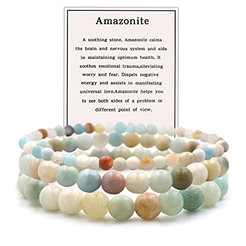 Ronglry - Ronglry 3Pcs Natural Stone Bracelets for Women Men Healing Crystal Beaded Bracelet Spiritual Amethyst Citrine Chakra Bracelets Set Anxiety Reiki Energy Power Healing Crystals Jewelry, Stone, no