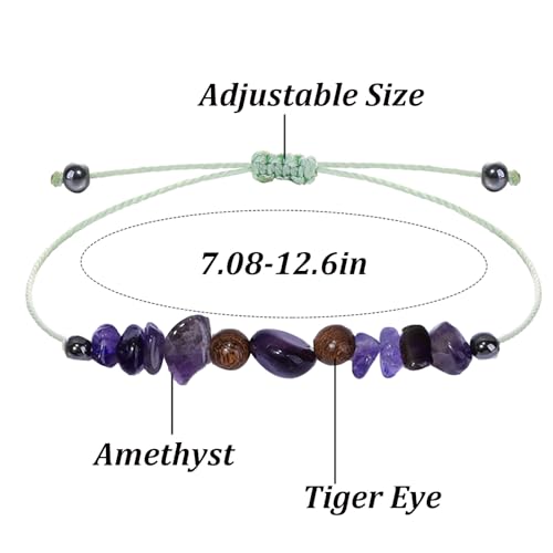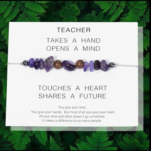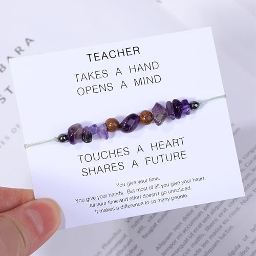Ronglry - Ronglry Teacher Healing Crystal Bracelet for Women Men Spiritual Crystal Bead Bracelet Amethyst Teacher Bracelets Anxiety Reiki Real Crystal Chip Healing Crystal Jewelry with Meaning Card-Teacher 1pcs