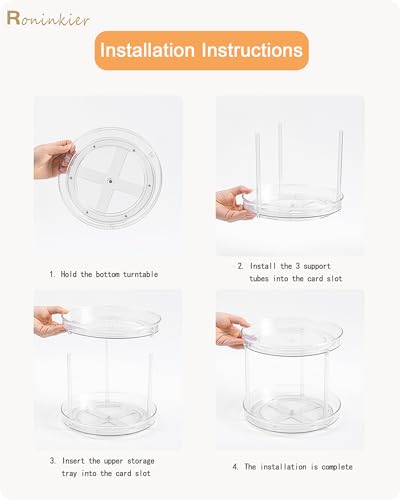 - Easy to install and disassemble. It can be used as a whole (a 2 Tier Lazy Susan) or seprately ( a 11 Inch turntable and a non-rotating storage tray).