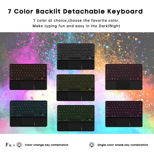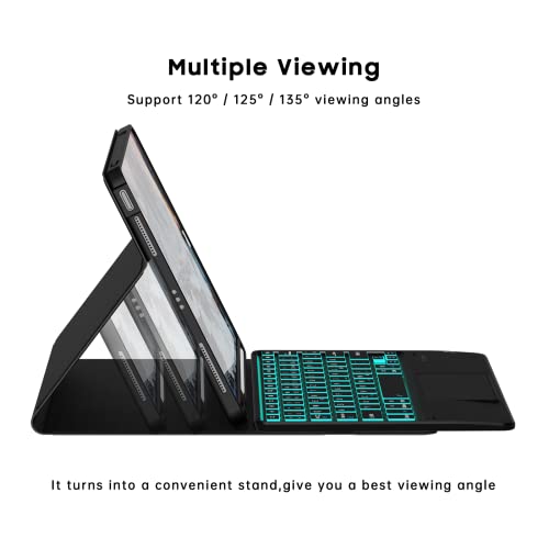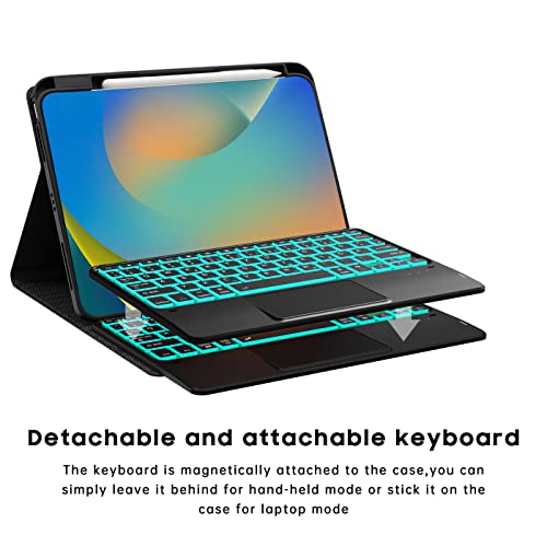 ROOFEI - حافظة ايباد الجيل العاشر مع لوحة مفاتيح QWERTZ - 7 من روفاي الوان خلفية متعددة اللمس التحكم باللمس حامل قلم لجهاز 10.9 بوصة 2022 لا سلكي أسود