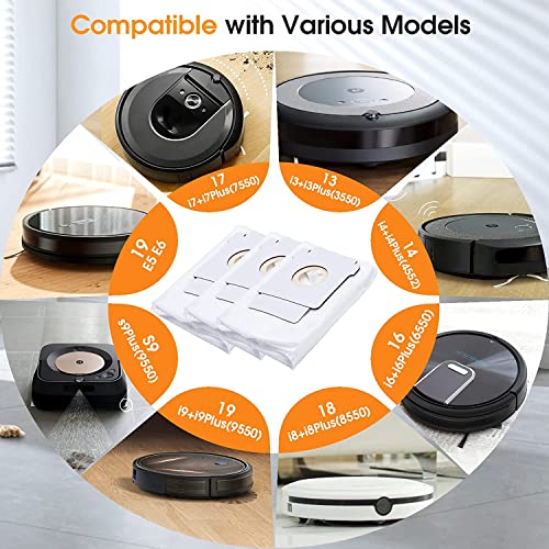 - 【Compatible All Clean Base Models】These roomba bags compatible for iRobot roomba vacuum i & s Series i7 i7+ i7Plus(7550) J7 J7+i3 i3+ i3 Plus(3550) i6 i6+ i6Plus(6550) i8 i8+ i8Plus(8550) s9(9150) s9+ s9 Plus(9550,955020) Robot Vacuum Cleaner.