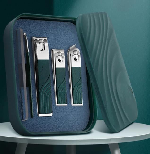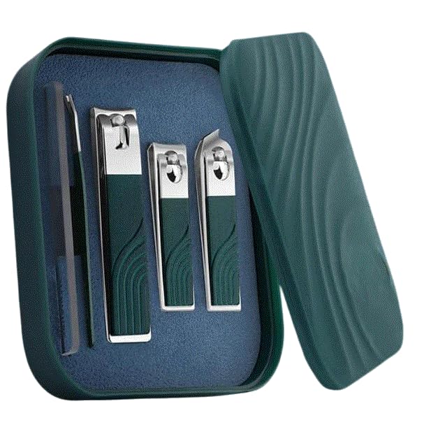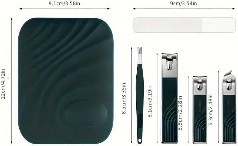 Generic - مجموعة قصافة أظافر مريحة وأدوات المانيكير والباديكيردقيقة من الفولاذ المقاوم للصدأ مع مقص ومبرد وملقاط ومقص للزوائد الجلدية مع حافظة للسفر، مجموعة من 5 قطع (لون أخضر غامق)