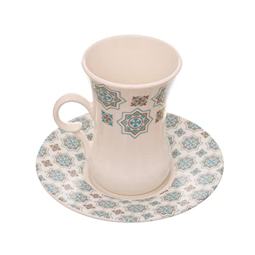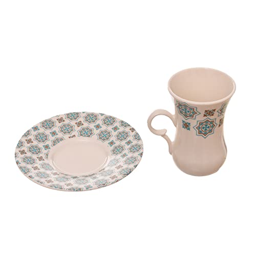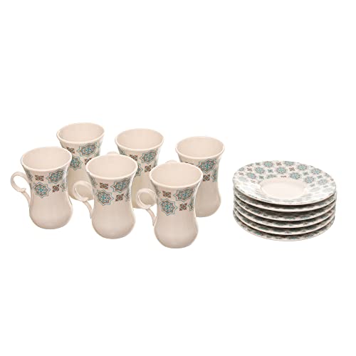 Rosa - طقم فناجين تركي بورسلين مزخرف مع اطباق من مادة متينة للمنزل والمكتب روزا اف ام 12 قطعة 8968 010020 متعدد الألوان