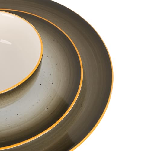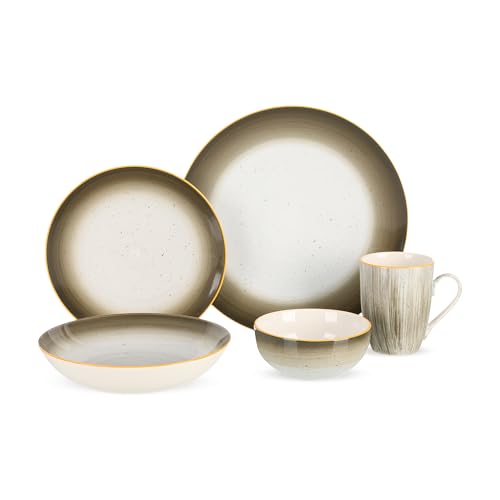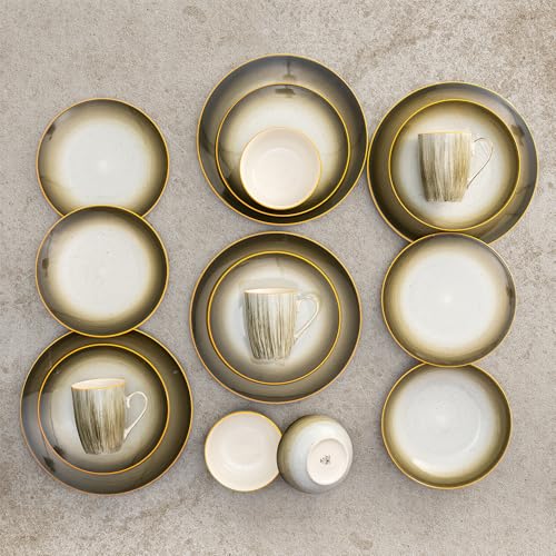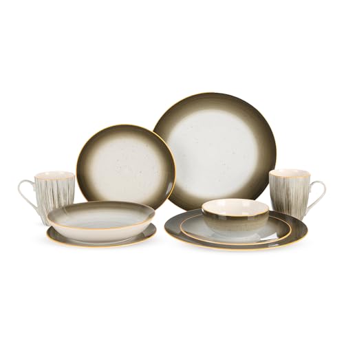 - ELEGANT DESIGN: Sophisticated white porcelain with subtle grey speckled pattern and distinctive gold rim detailing for a modern yet timeless aesthetic