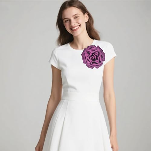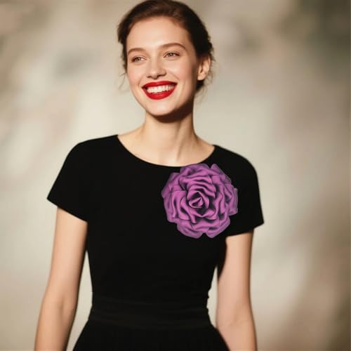 20LY - Rose Flower Brooches for Women Handmade Oversized 6.3 Inch Glossy Silk Satin Floral Pin Wedding Party Accessories for Dresses Hats Jackets