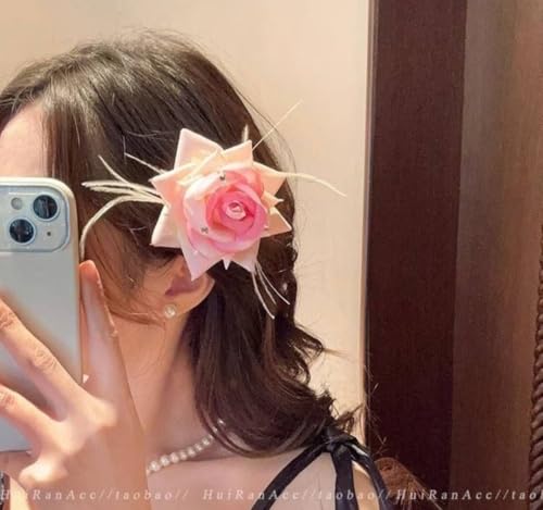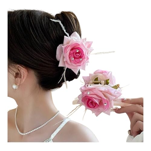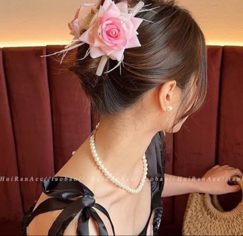 Generic - دبوس شعر وردي مزين بالورود والكريستال مع لؤلؤ، طقم زفاف