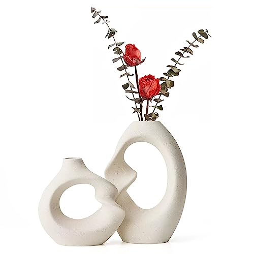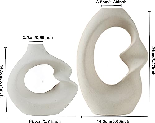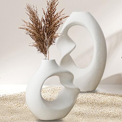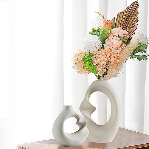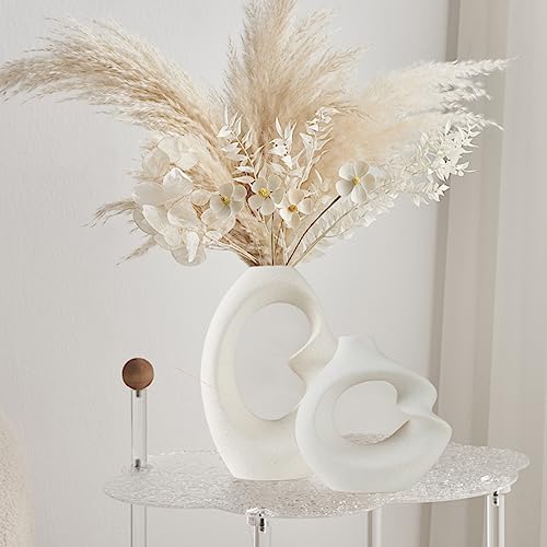 Rose Manor - White Ceramic Vase, 2Pcs Modern Vase for Minimalist Decor, Hollow Round Matte Pampas Flower Vase For Nordic Bohemian Ins Style Home Decor,Home Wedding Party Room Table Stand Decoration Gift