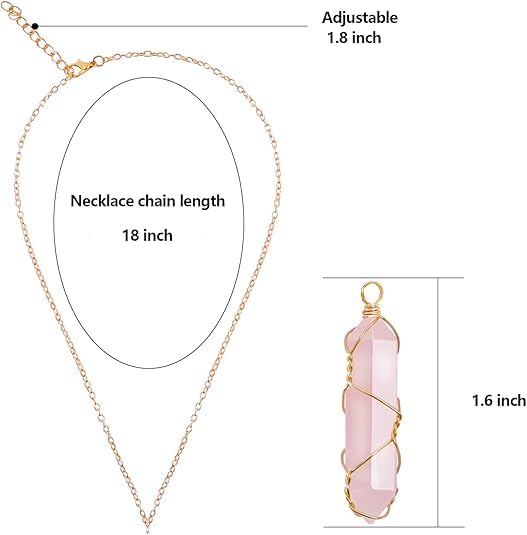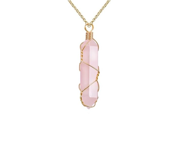 fashion mania - Rose Quartz Gold Wire Wrapped Necklace Natural Crystal Hexagonal Pendant Handmade Healing Spiritual Jewelry for Women Men
