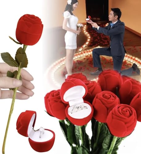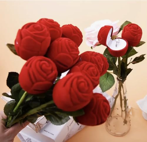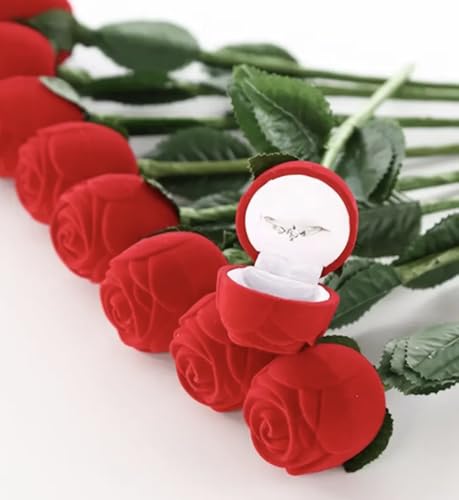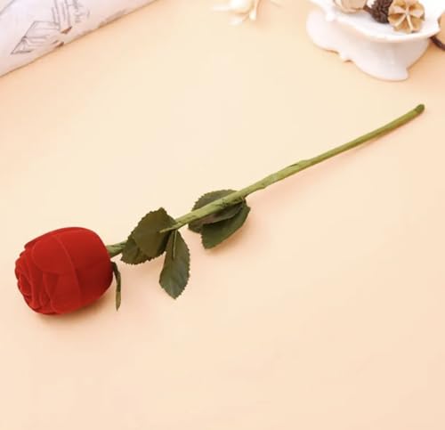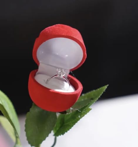 - تصميم وردة رومانسية: صندوق خاتم جميل على شكل وردة مع جذع وأوراق واقعية، يرمز إلى الحب والتفاني.