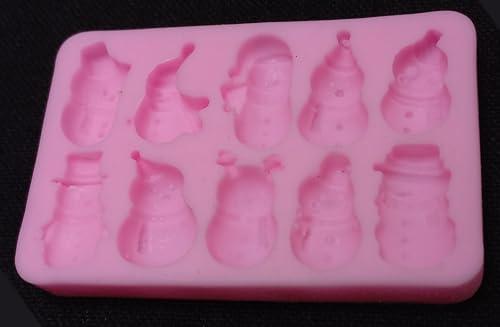 Generic - قالب سيليكون وردي لصنع رجل الثلج، 10 أشكال مختلفة للديكور، قالب حلويات للكعك والشوكولاتة، مقاس 9.6 × 6 سم