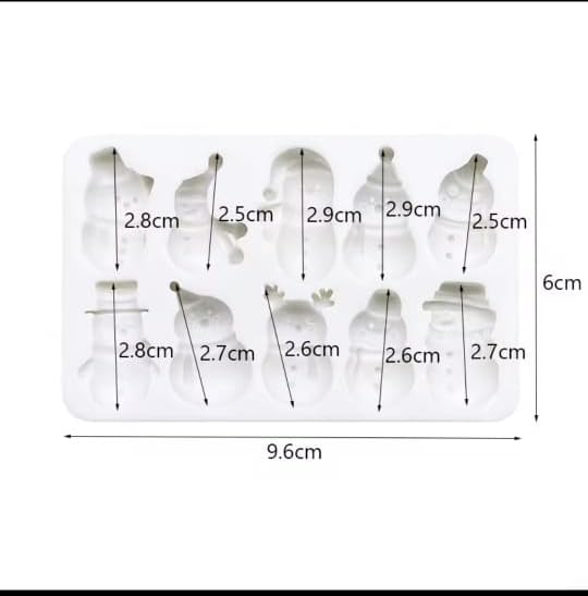 - قالب متعدد الأشكال: يحتوي على 10 تصاميم مختلفة لرجل الثلج، مثالي لصنع الحلويات والشوكولاتة والكعك