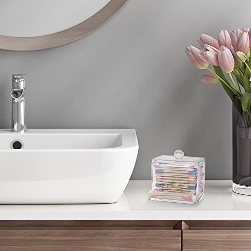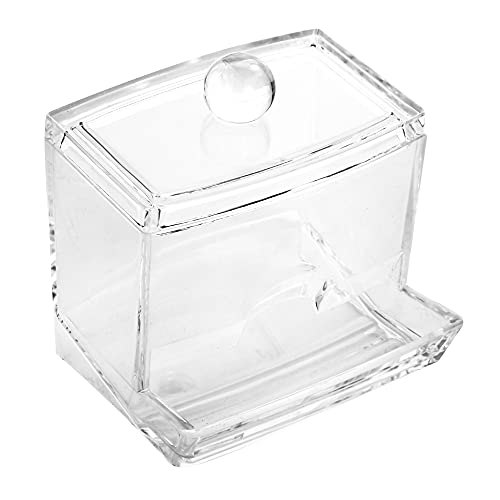 ROSELIFE - حامل ممسحات قطنية من روسيليف، منظم على شكل حرف Q من الاكريليك مع غطاء يمكن استخدامه في الحمام او التسريحة بجانب ادوات التجميل، لون شفاف عبوة واحدة