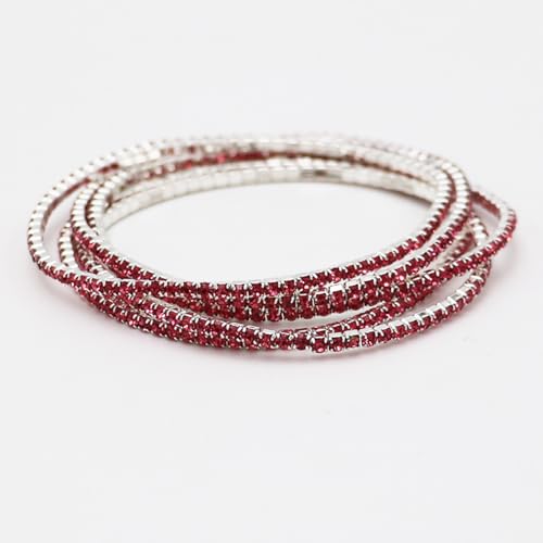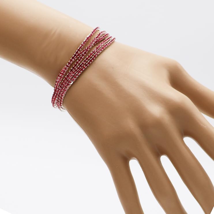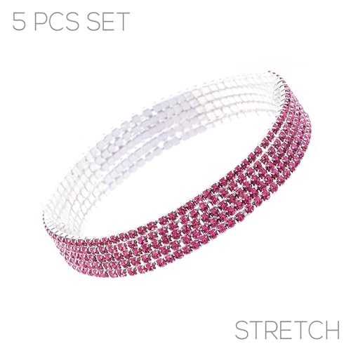 generic - Rosemarie ctions Women's Set of 5 Sparkling Crystal Rhinestone Stacking Stretch Bracelets, 2.25" (Pink Crystal Silver Tone)