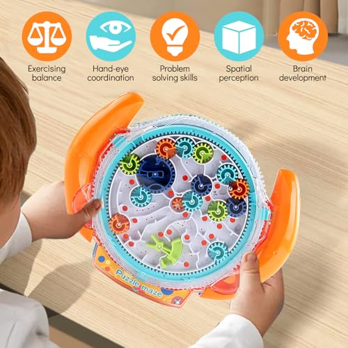 RoserRose - كرة متاهة من روزروز، كرة متاهة، لعبة متاهة كرات، متاهة كرات ثلاثية الأبعاد، لعبة متاهة، لعبة أحجية للأطفال والكبار، مناسبة للأطفال من سن 3-8 سنوات- لون برتقالي