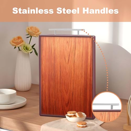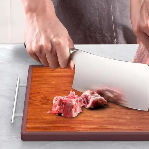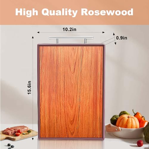 Saebume - Rosewood Wooden Cutting Boards for Kitchen,Reversible Edge-wrapped Chopping Board with Stainless Steels Handles and Juice Grooves,Wood Thick Butcher Block for Meat,Cheese, Fruit and Vegetables