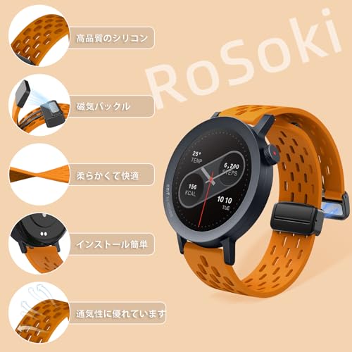 RoSoki - 0.9 inch (22 mm) Band, Compatible with CMF by Nothing Watch Pro 3 / CMF by Nothing Watch Pro 2, Silicone, Sports Band, Replacement Strap, Soft, Breathable, Magnetic, Easy to Wear, Lightweight