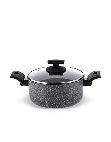 ROSSETTI INTELLIGENZA CASALINGHI - Rossetti Elementi Natura Made in Italy 20cm Granite Non Stick Casserole Pot Stockpot + Lid No-Mess No-Fuss Carefree Nonstick Cookware Dishwasher Safe PFOA & Lead Free Nonstick Casserole with Lid