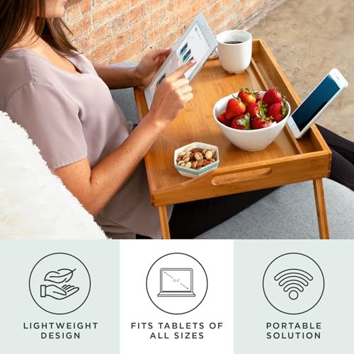 Rossie Home - ROSSIE HOME Large Bamboo Wood Bed Tray, Lap Tray, Lap Desk with Phone Holder - Fits up to 15.6 Inch Laptops and Most Tablets - Natural - Style No. 78007