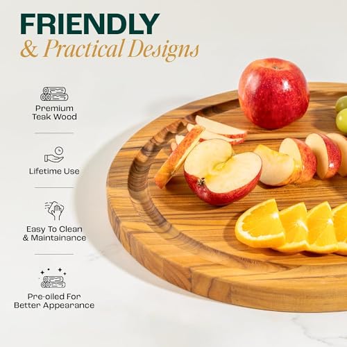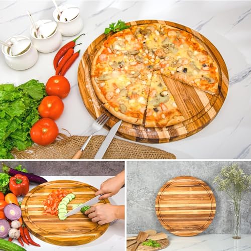 ROSTON - ROSTON Wooden Chopping Board Teak Wood Cutting Board Serving Platter Board with Juice Grooves (Round)