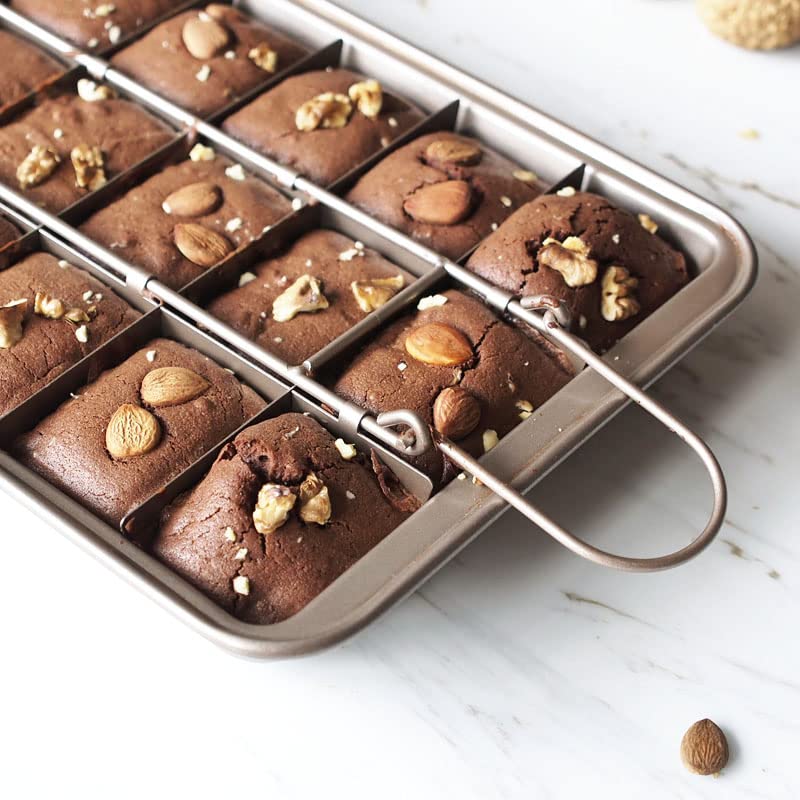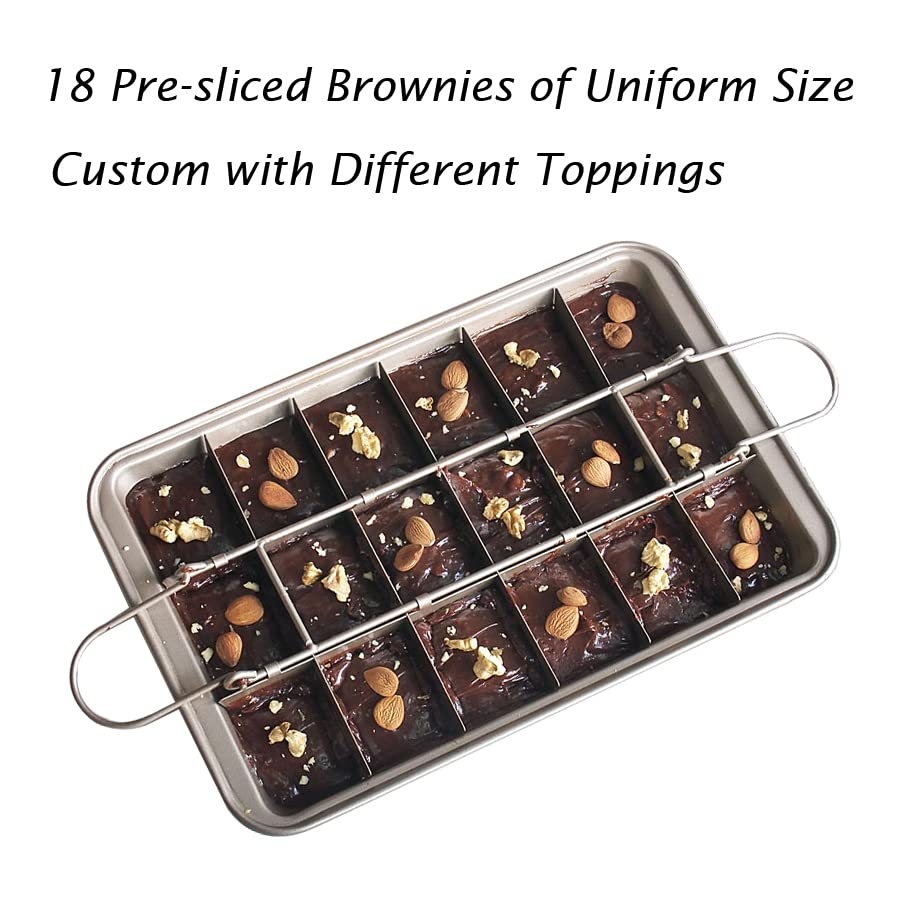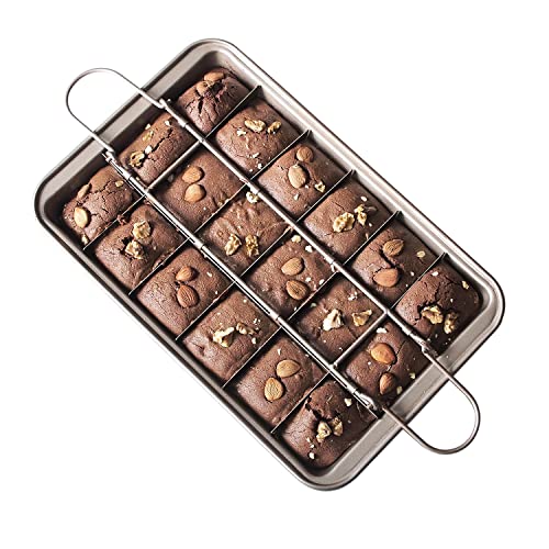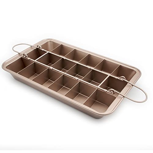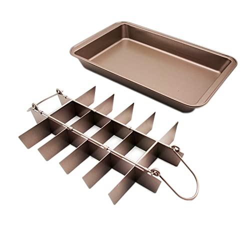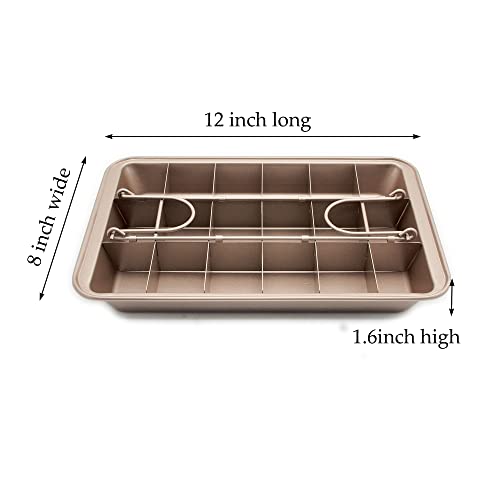 RosyMyth - Non Stick Brownie Pan with Dividers, High Carbon Steel Baking Pan Brownie Cutter, Makes 18 Pre-cut Brownies All at Once (Champagne Gold)