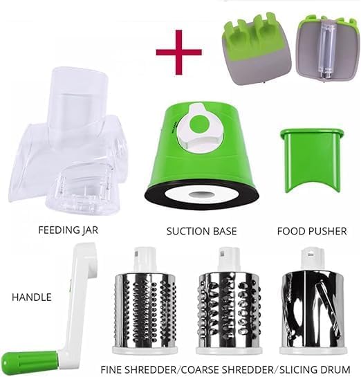Generic - Rotary Grater 4 in 1 Multifunctional Grater for Cheese, Vegetables, Fruits, Nuts with Interchangeable Blades and Potato Peeler