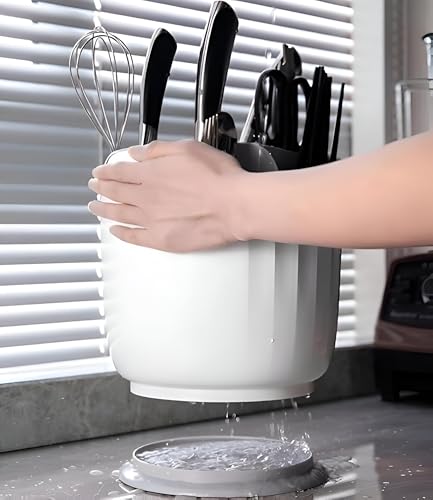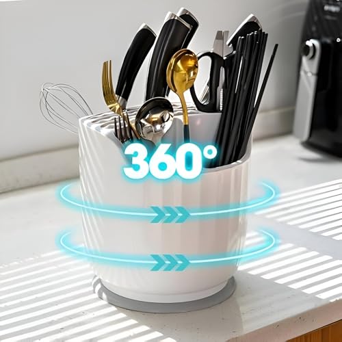 Generic - منظم أدوات دوار - حامل دوار 360 درجة يحمل الملاعق والسكاكين والشوك وغيرها من أدوات المطبخ، مما يوفر مساحة تخزين خالية من الفوضى على الأسطح والأدراج