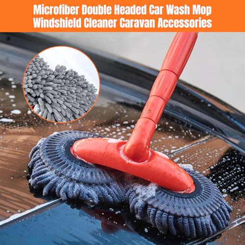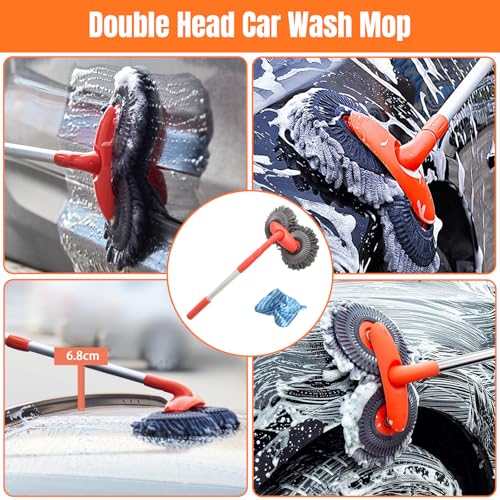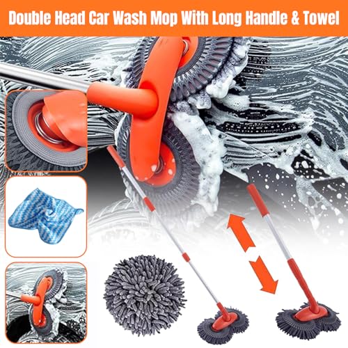 - 【Double Head Car Wash Mop】This car wash mop brush offers a wide cleaning range. It's soft, absorbent, and generates foam easily, ensuring a scratch-free cleaning experience that's gentle on car paint. This Rotating Car Mop boasts a seamless 360° rotating mechanism, allowing for effortless adjustment to any angle. Used for cleaning small spaces, making cleaning easier, more efficient, and effective for cleaning cars, vehicles, and homes