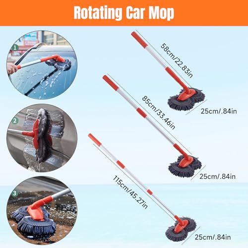 - 【FlexibleRotating Design Rotating Car Mop】This car wash mop brush features rotating head, allowing easy adjustment to any angle for effortless cleaning. Experience a wider cleaning reach with this Car Wash Mop with Long Handle. Its soft, highly absorbent fibers generate rich foam effortlessly, Soft brush, lightweight and efficient, with materials that are soft and gentle on car paint surfaces. Very suitable for cleaning small areas, suitable external surfaces for various cleaning tasks